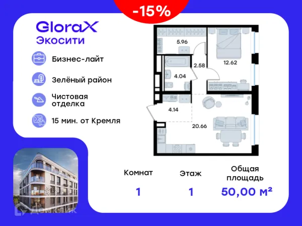1 комн. квартира в Казане в ипотеку от 66 672 руб/месяц