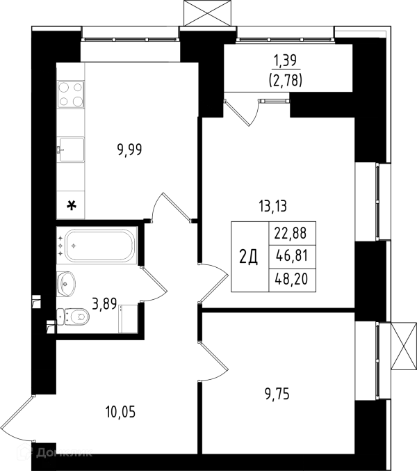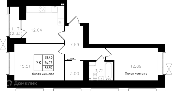 2 комн. квартира в Казане в ипотеку от 75 610 руб/месяц