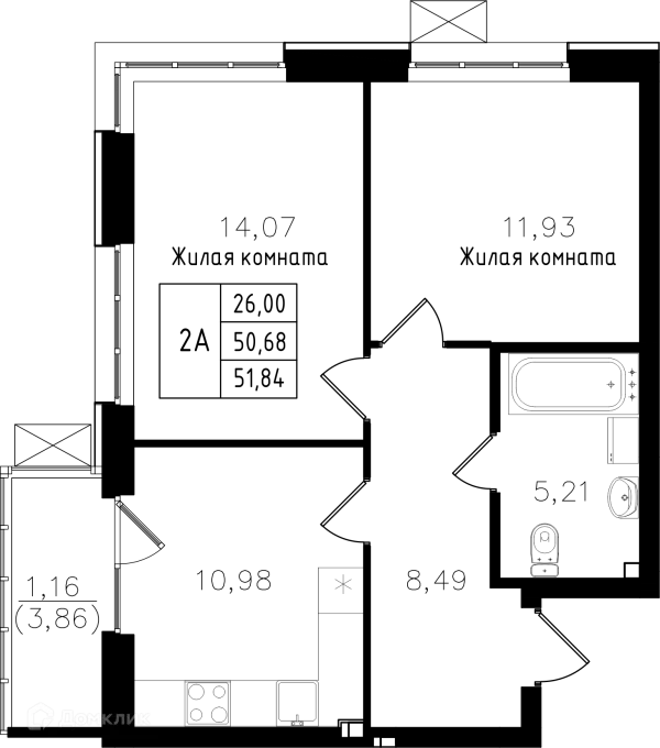 2 комн. квартира в Казане в ипотеку от 86 581 руб/месяц