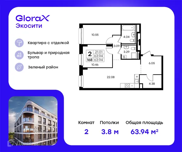 2 комн. квартира в Казане в ипотеку от 64 305 руб/месяц