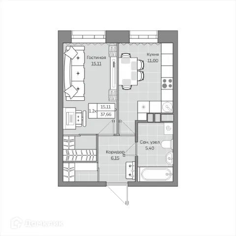 1 комн. квартира в Казане в ипотеку от 55 512 руб/месяц