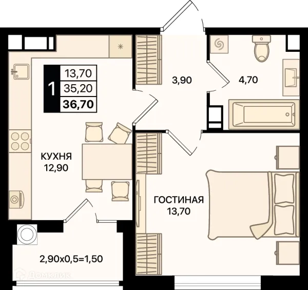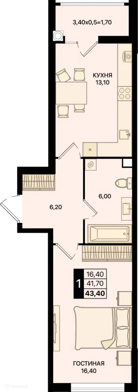 1 комн. квартира в Ростове-на-Дону в ипотеку от 41 729 руб/месяц