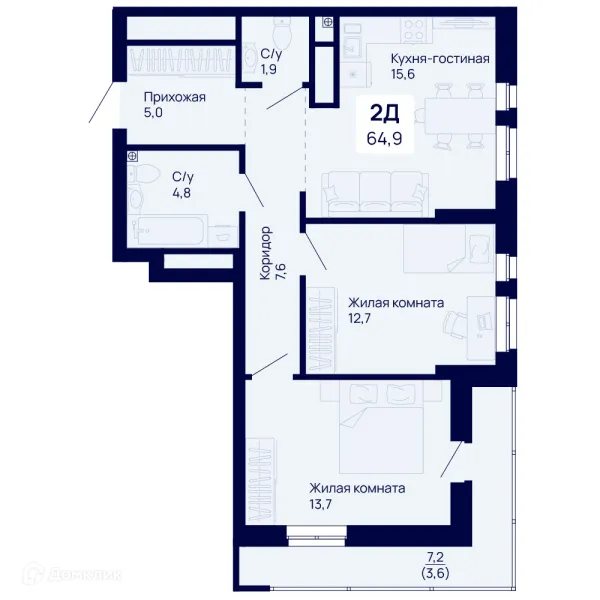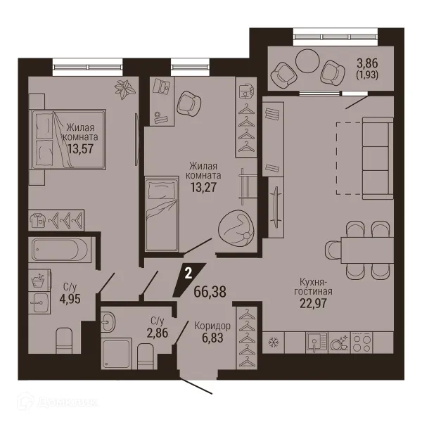 2 комн. квартира в Екатеринбурге в ипотеку от 64 737 руб/месяц