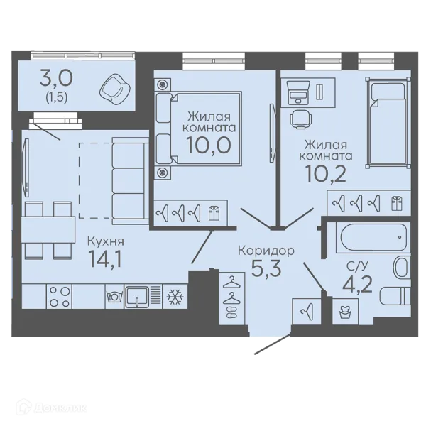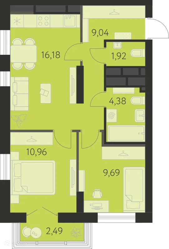 2 комн. квартира в Екатеринбурге в ипотеку от 41 304 руб/месяц