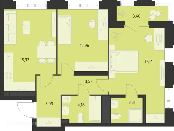 2 комн. квартира в Екатеринбурге в ипотеку от 80 809 руб/месяц