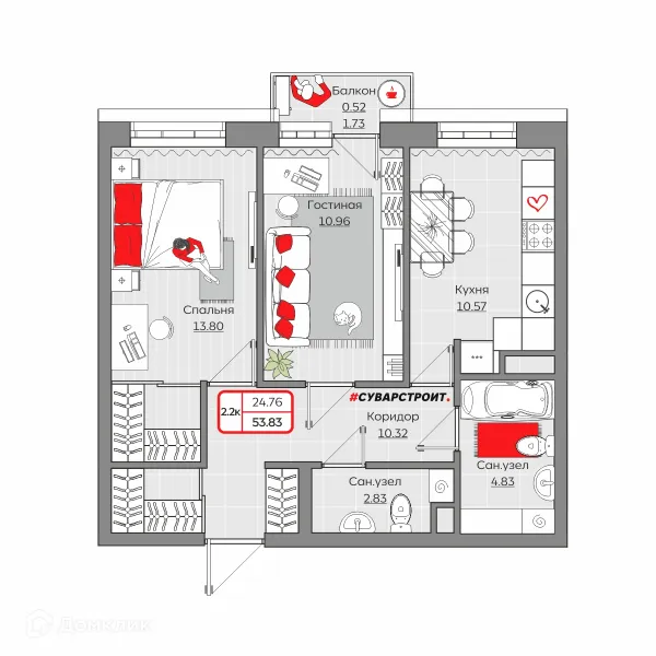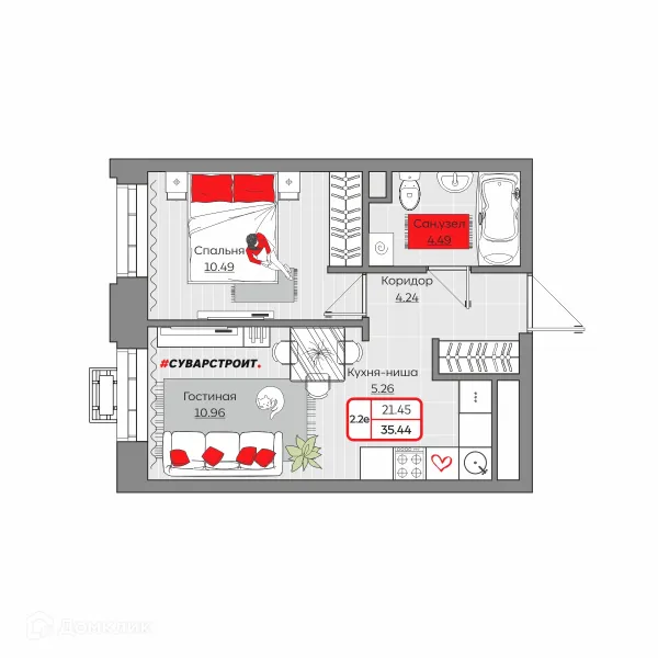 2 комн. квартира в Казане в ипотеку от 54 965 руб/месяц