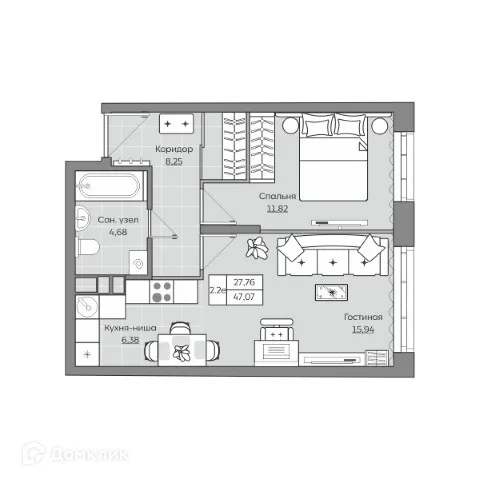 2 комн. квартира в Казане в ипотеку от 82 739 руб/месяц