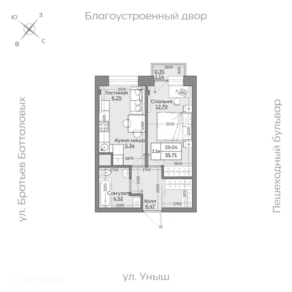 2 комн. квартира в Казане в ипотеку от 76 071 руб/месяц