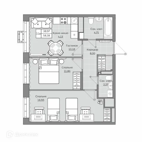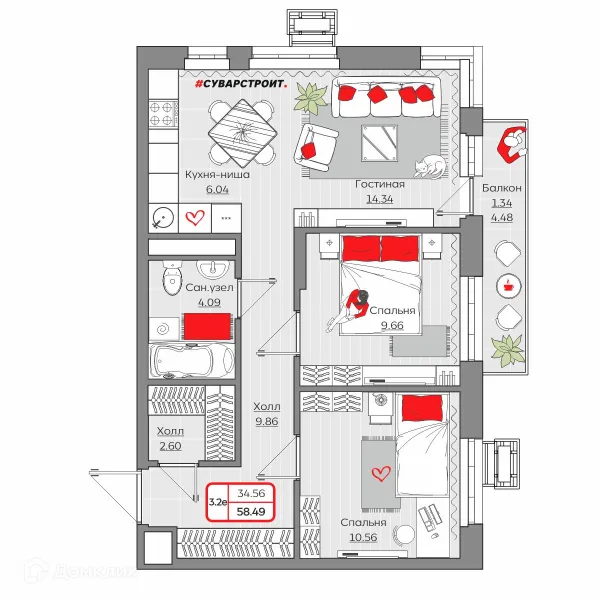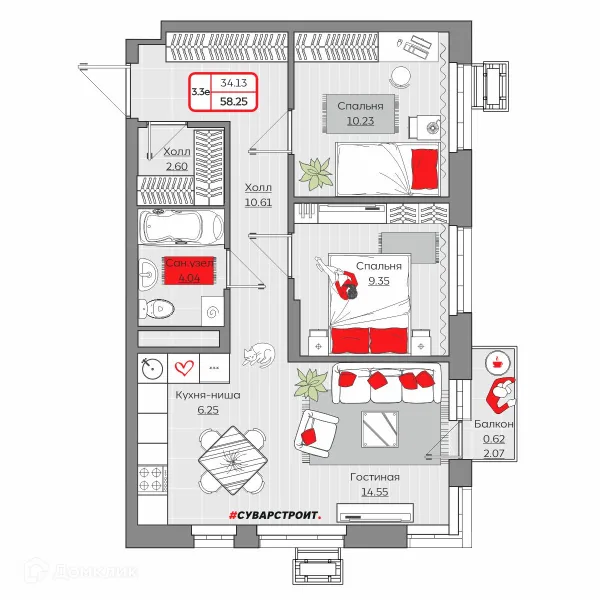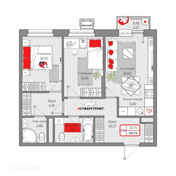 3 комн. квартира в Казане в ипотеку от 100 972 руб/месяц