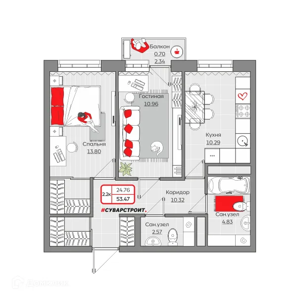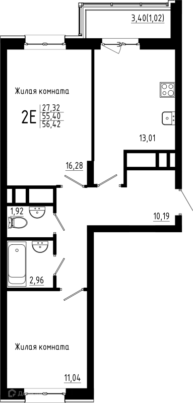 2 комн. квартира в Казане в ипотеку от 105 560 руб/месяц
