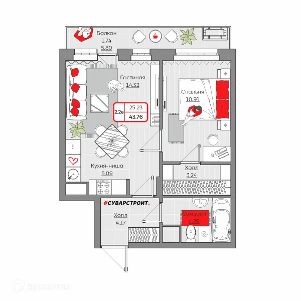 2 комн. квартира в Казане в ипотеку от 93 577 руб/месяц