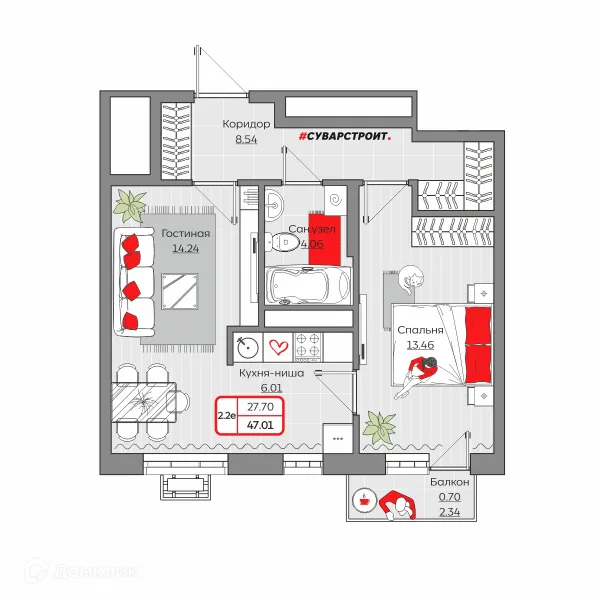 2 комн. квартира в Казане в ипотеку от 67 703 руб/месяц