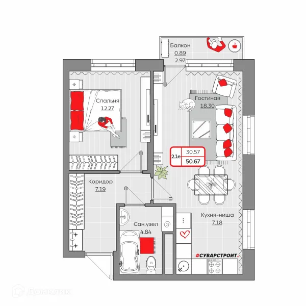 2 комн. квартира в Казане в ипотеку от 65 255 руб/месяц