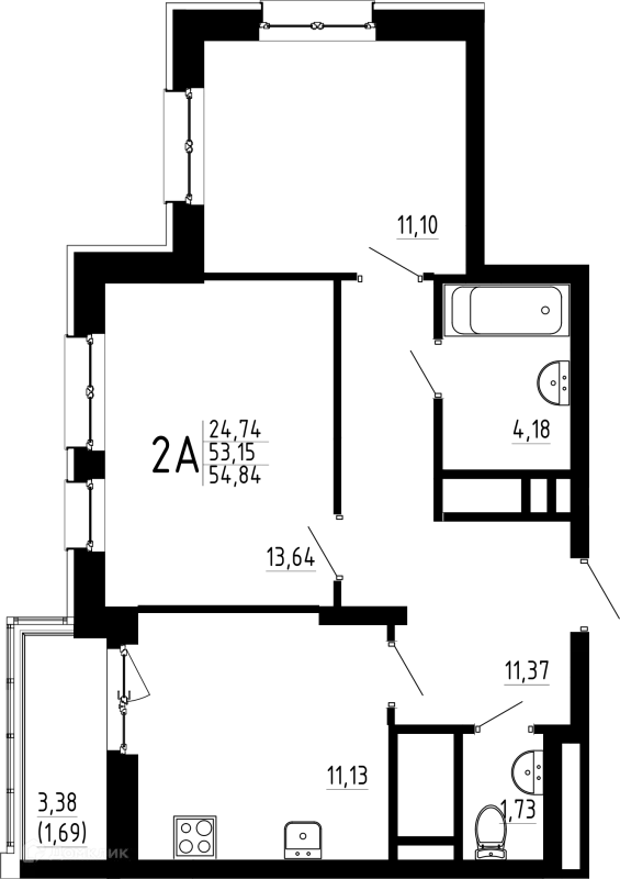 2 комн. квартира в Казане в ипотеку от 131 034 руб/месяц
