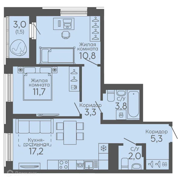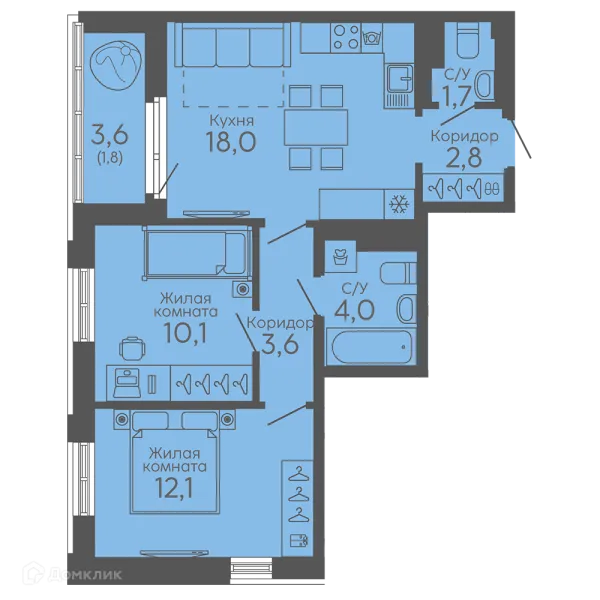 2 комн. квартира в Екатеринбурге в ипотеку от 43 623 руб/месяц