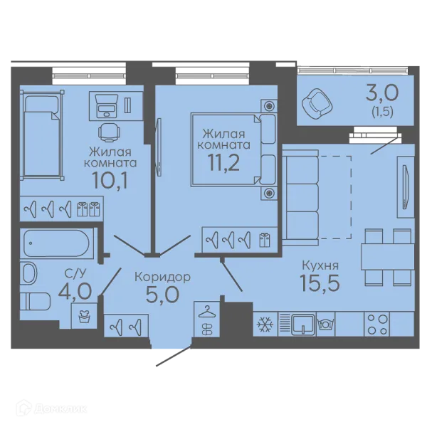 2 комн. квартира в Екатеринбурге в ипотеку от 45 755 руб/месяц