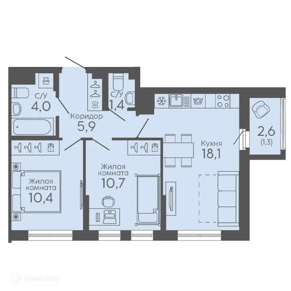 2 комн. квартира в Екатеринбурге в ипотеку от 43 839 руб/месяц