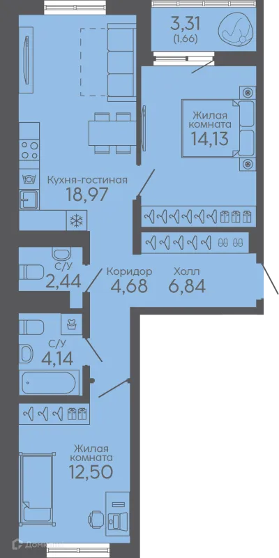 2 комн. квартира в Екатеринбурге в ипотеку от 50 263 руб/месяц