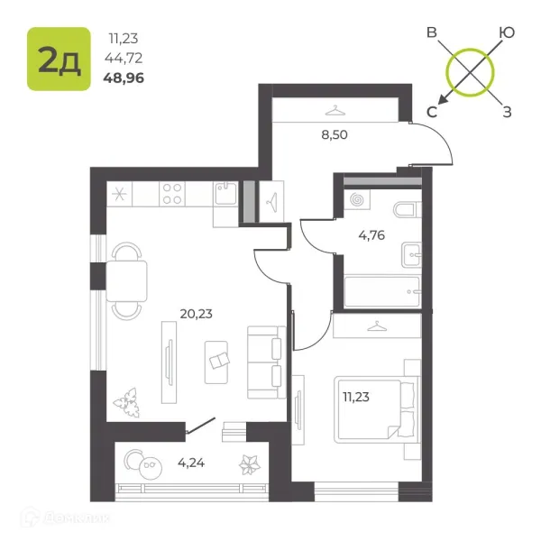 1 комн. квартира в Екатеринбурге в ипотеку от 48 443 руб/месяц