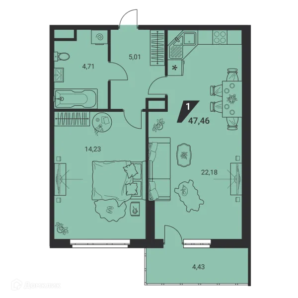 1 комн. квартира в Екатеринбурге в ипотеку от 47 455 руб/месяц