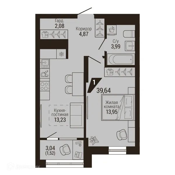 1 комн. квартира в Екатеринбурге в ипотеку от 63 641 руб/месяц