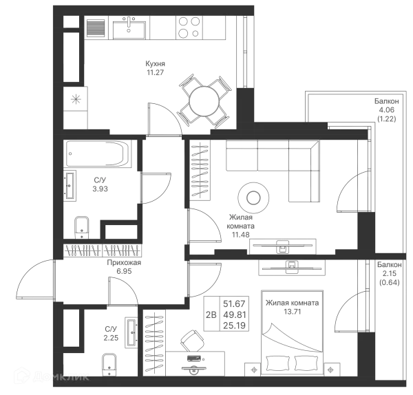 2 комн. квартира в Казане в ипотеку от 99 221 руб/месяц