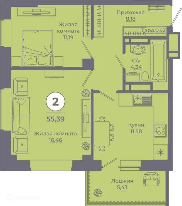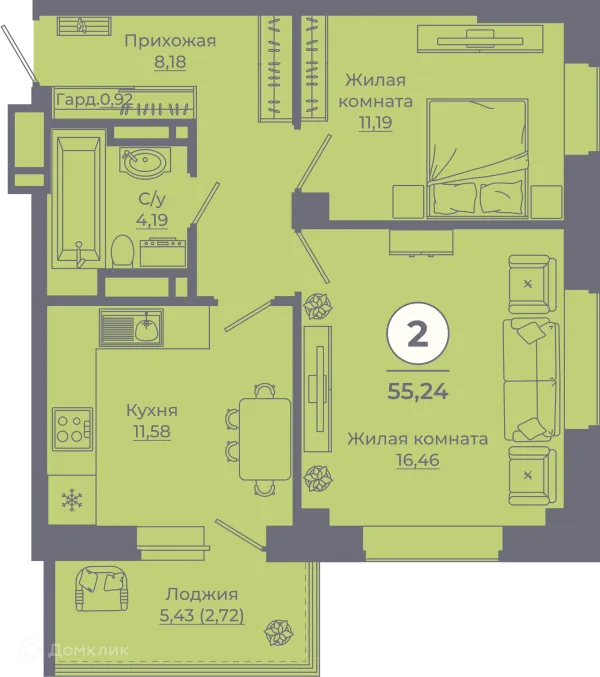 2 комн. квартира в Ростове-на-Дону в ипотеку от 55 318 руб/месяц
