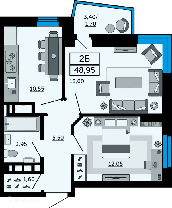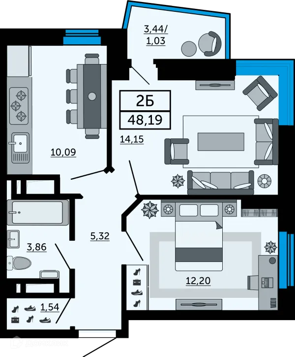 2 комн. квартира в Ростове-на-Дону в ипотеку от 47 148 руб/месяц