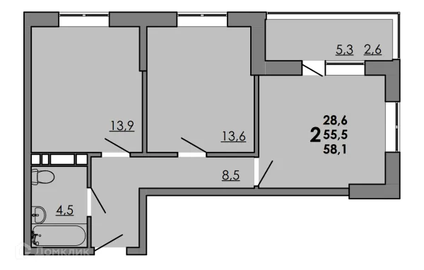 2 комн. квартира в Ростове-на-Дону в ипотеку от 55 578 руб/месяц