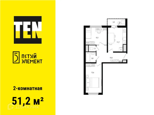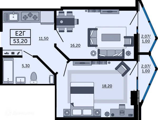 2 комн. квартира в Ростове-на-Дону в ипотеку от 53 532 руб/месяц
