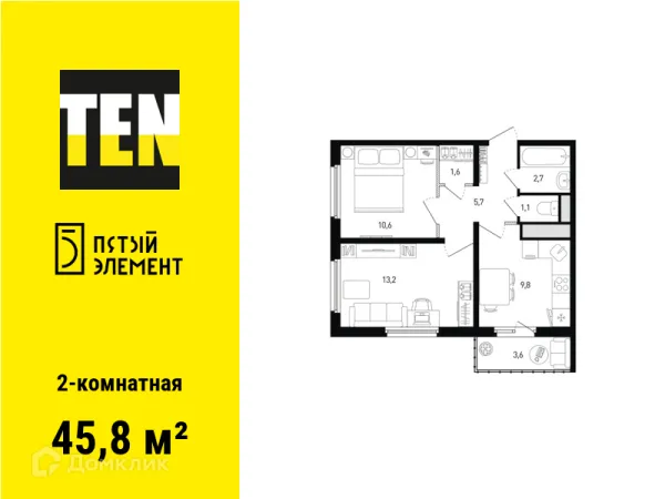 2 комн. квартира в Ростове-на-Дону в ипотеку от 41 645 руб/месяц