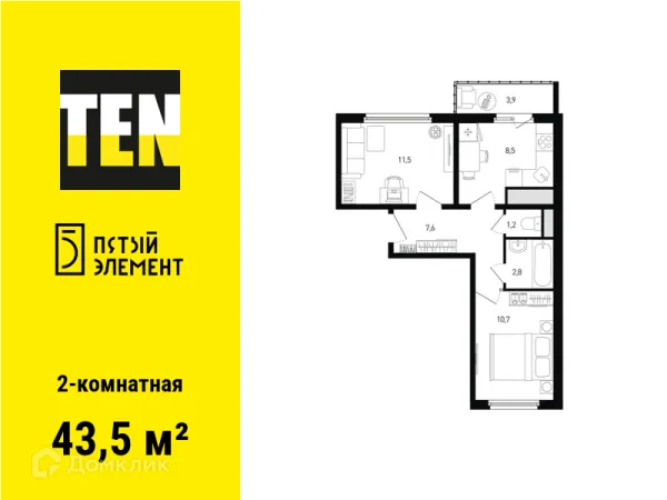 2 комн. квартира в Ростове-на-Дону в ипотеку от 28 281 руб/месяц