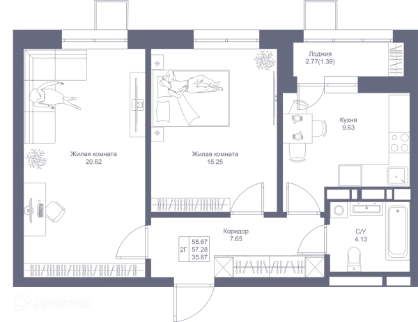 2 комн. квартира в Казане в ипотеку от 74 115 руб/месяц