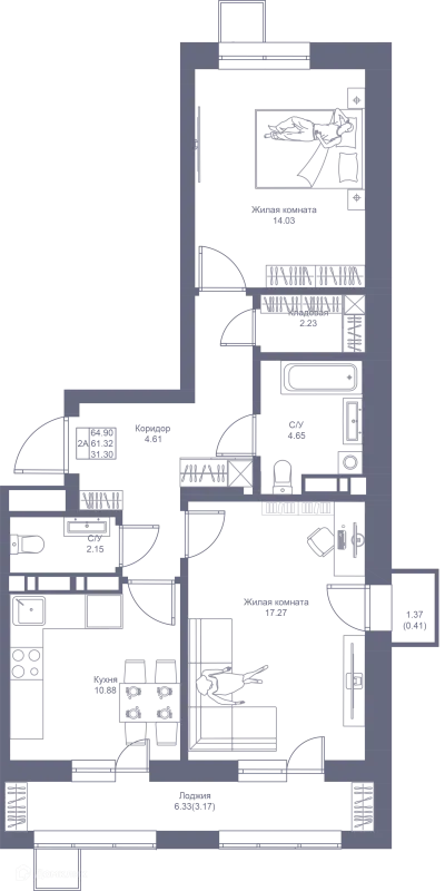 2 комн. квартира в Казане в ипотеку от 85 889 руб/месяц