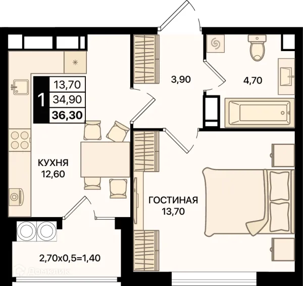 1 комн. квартира в Ростове-на-Дону в ипотеку от 39 416 руб/месяц