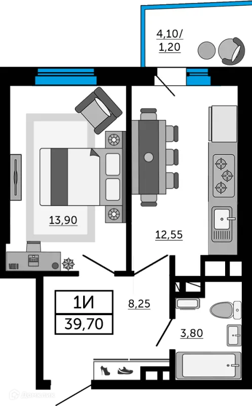 1 комн. квартира в Ростове-на-Дону в ипотеку от 41 191 руб/месяц