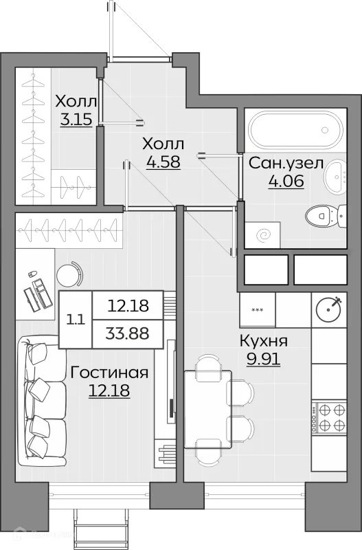 1 комн. квартира в Казане в ипотеку от 58 241 руб/месяц
