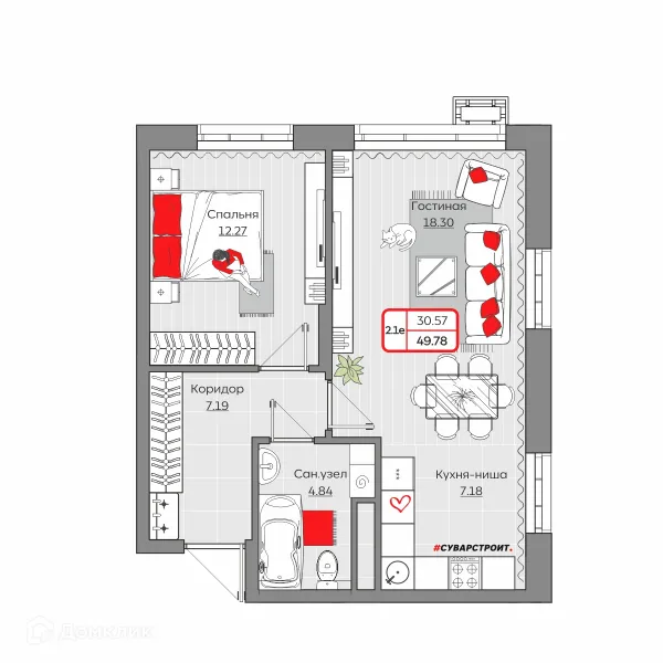 2 комн. квартира в Казане в ипотеку от 78 008 руб/месяц