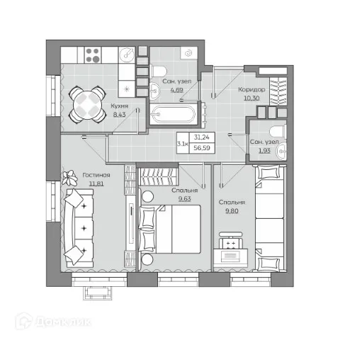 3 комн. квартира в Казане в ипотеку от 110 967 руб/месяц