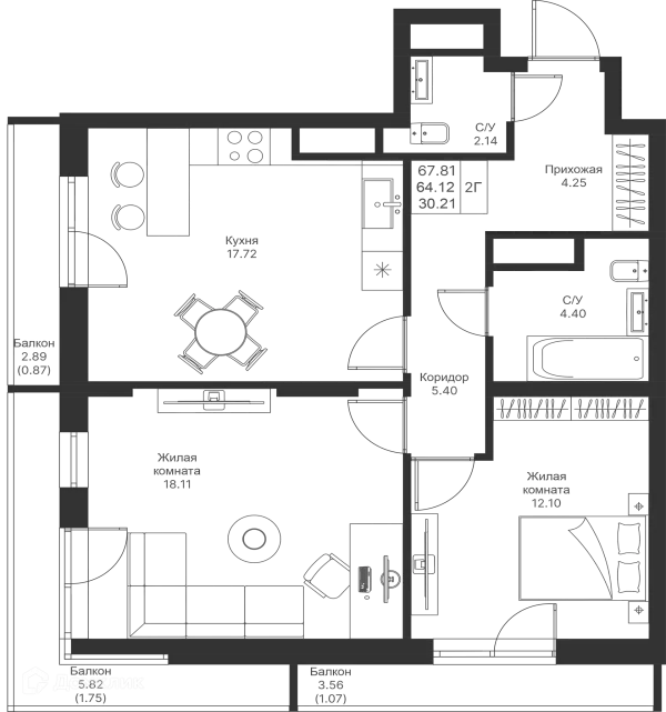 2 комн. квартира в Казане в ипотеку от 98 685 руб/месяц