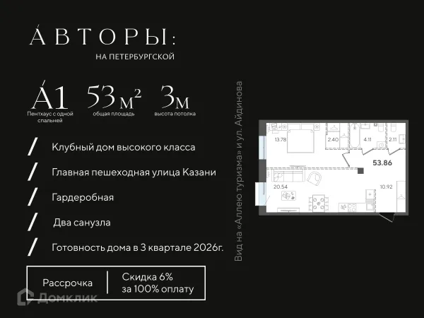 1 комн. квартира в Казане в ипотеку от 137 645 руб/месяц