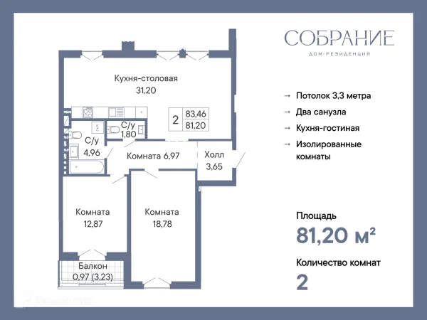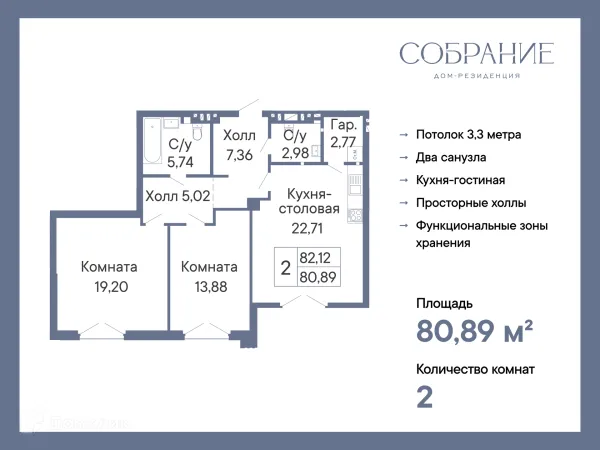 2 комн. квартира в Ростове-на-Дону в ипотеку от 84 490 руб/месяц