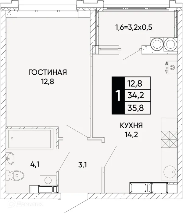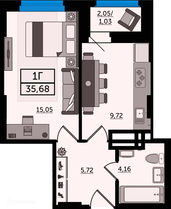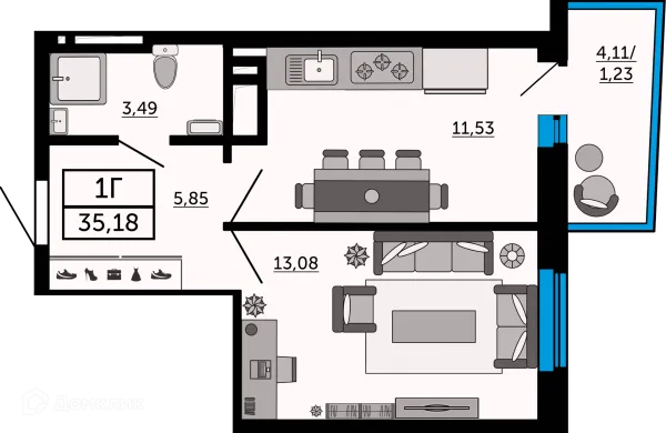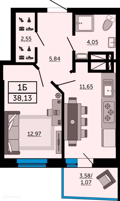 1 комн. квартира в Ростове-на-Дону в ипотеку от 41 186 руб/месяц