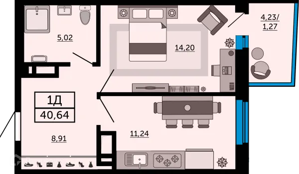 1 комн. квартира в Ростове-на-Дону в ипотеку от 40 466 руб/месяц