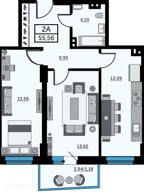 2 комн. квартира в Ростове-на-Дону в ипотеку от 55 488 руб/месяц