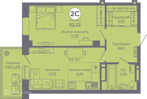 2 комн. квартира в Ростове-на-Дону в ипотеку от 55 276 руб/месяц