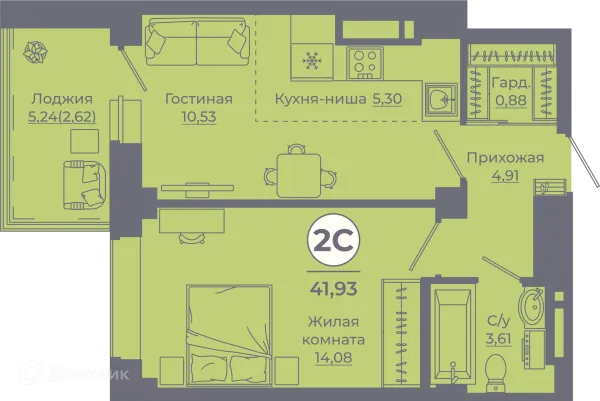 2 комн. квартира в Ростове-на-Дону в ипотеку от 42 353 руб/месяц