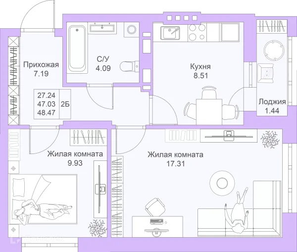 2 комн. квартира в Казане в ипотеку от 93 541 руб/месяц