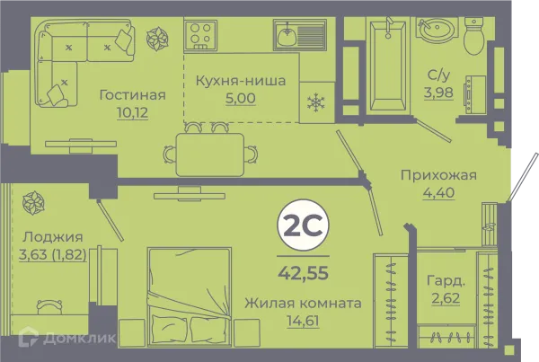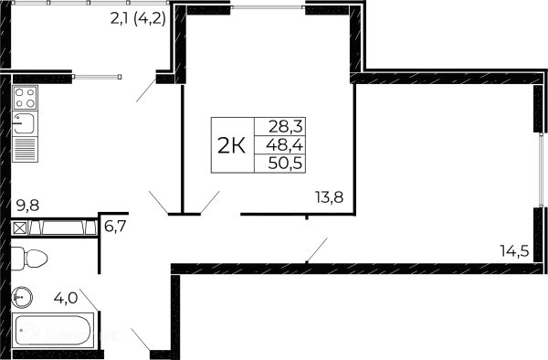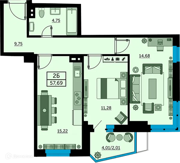 2 комн. квартира в Ростове-на-Дону в ипотеку от 45 401 руб/месяц