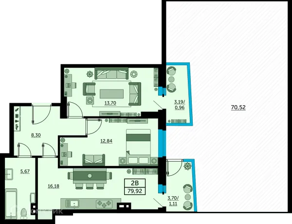 2 комн. квартира в Ростове-на-Дону в ипотеку от 70 557 руб/месяц